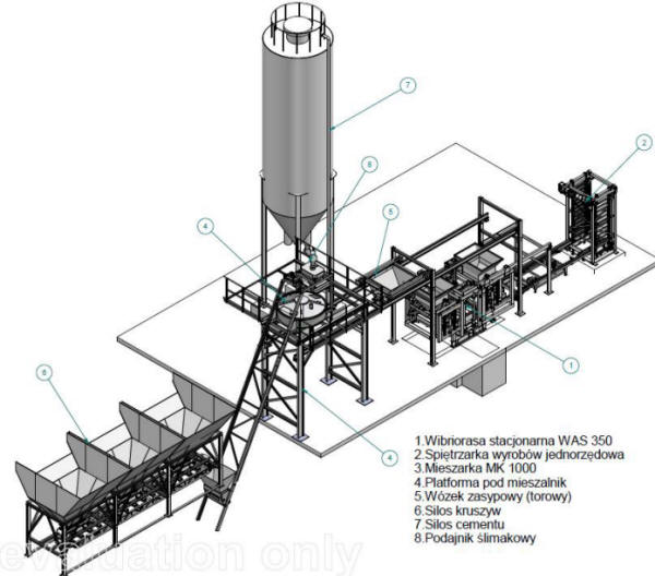 di origine urbana o rifiuti di post-produzione legati con cemento in una miscela semisecca come calcestruzzo di ghiaia, calcestruzzo di scorie, ecc. Il vantaggio è l'elevata efficienza da 2.000 a 10.000 elementi per 8h